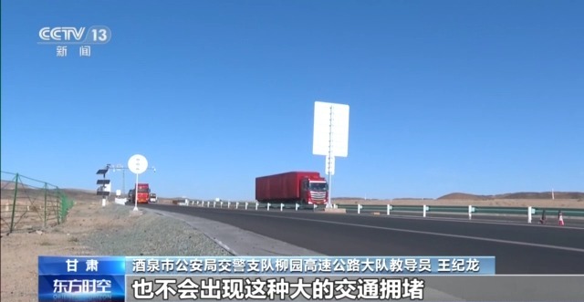 酒泉市公安局交警支隊柳園高速公路大隊教導(dǎo)員 王紀(jì)龍:我們每年這個路段的交通擁堵,可能達(dá)到100多次。