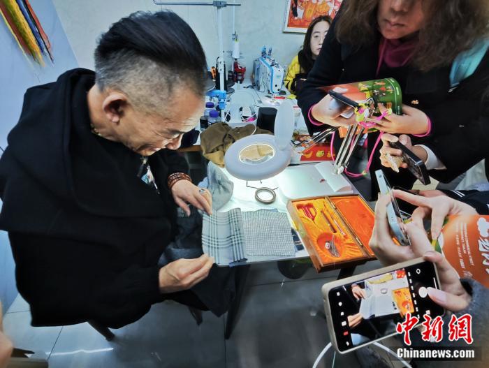 不足十平方米的店鋪中,老師傅徐春元桌前靜坐,目光如炬,手腕翻飛,細(xì)如牛毛的針在布料中來回穿梭。已年過花甲的他,從事織補(bǔ)工作整整48年,是“傳統(tǒng)精工織補(bǔ)技藝”非遺項目持有人。那雙巧手,總能將破損的衣物修復(fù)得如初見般完美。