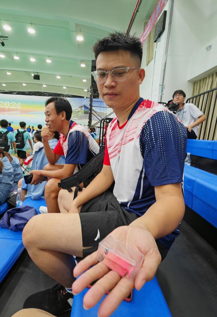 “香港隊(duì)很厲害,沒想到他們還給我們準(zhǔn)備了禮物,挺驚喜的。”西藏隊(duì)毽球運(yùn)動(dòng)員韋盛森從褲兜里掏出一個(gè)精致的粉色毽球掛飾給記者看,并懊惱自己沒有準(zhǔn)備禮物?!百惡笪覀兒拖愀坳?duì)說了很多互相鼓勵(lì)的話,我們希望找機(jī)會(huì)再和他們交流?!?/p>