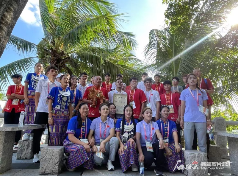 保亭黎族苗族自治縣歌舞團(tuán)的姑娘們還帶著新疆代表團(tuán)成員體驗(yàn)竹竿舞?!拔覀儚慕拥饺蝿?wù)到現(xiàn)在已準(zhǔn)備了一年多,看到各民族交往交流交融的畫面感到很高興。”黎族姑娘王桃雀說。