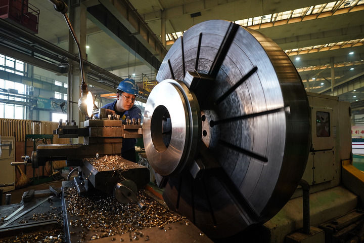 2023年2月14日,通用技術(shù)集團(tuán)沈陽機(jī)床的工人在車間進(jìn)行生產(chǎn)工作。新華社記者 潘昱龍 攝