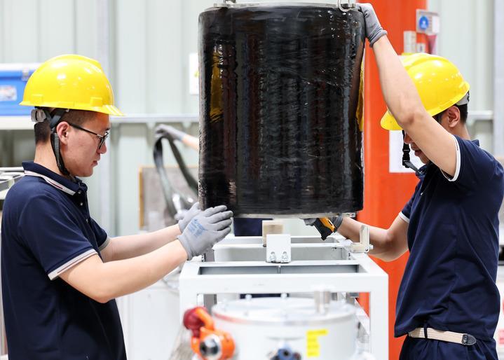 沈陽微控飛輪技術(shù)股份有限公司的工人在進(jìn)行組裝工作(2024年6月13日拍攝)。 新華社記者 李鋼 攝