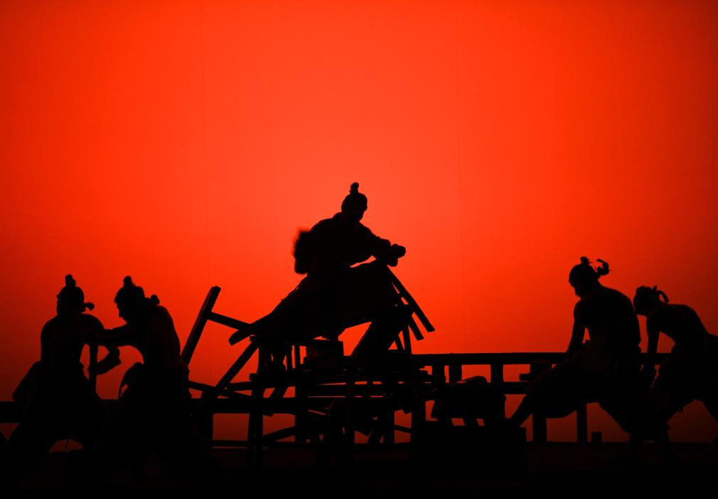 這是以“云夢(mèng)睡虎地黑夫木牘”為靈感創(chuàng)排的大型歷史舞臺(tái)劇《赳赳大秦》演出現(xiàn)場(chǎng)(2024年9月25日攝)。 新華社記者 張博文 攝