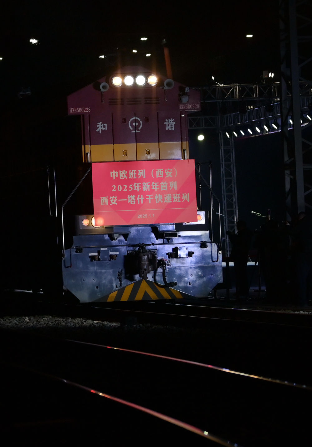 2025年1月1日0時(shí),伴隨著汽笛長(zhǎng)鳴,滿(mǎn)載著白色家電、紡織品和化工品等貨物共計(jì)50個(gè)集裝箱的中歐班列(西安)駛出西安國(guó)際港站,一路向西駛往烏茲別克斯坦首都塔什干。