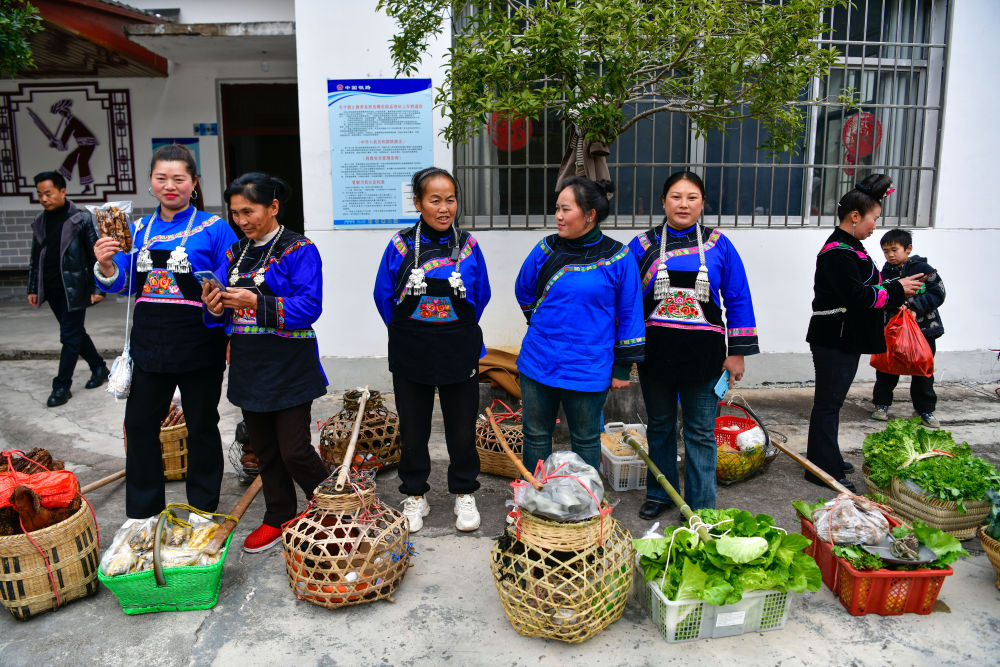 1月18日,在滬昆鐵路六個雞火車站,鐵路工作人員與村民交流當天售賣的農(nóng)產(chǎn)品情況。新華社記者 楊文斌 攝