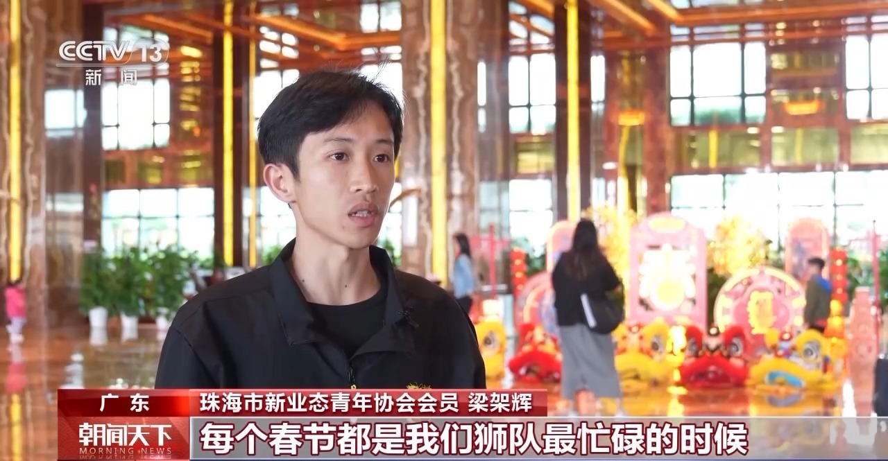 珠海市新業(yè)態(tài)青年協(xié)會(huì)會(huì)員 梁架輝:每個(gè)春節(jié)都是我們獅隊(duì)最忙碌的時(shí)候,但是我們也不覺(jué)得辛苦,奮斗的青春最美麗,希望為大灣區(qū)的新春增添更多喜慶氣氛。
