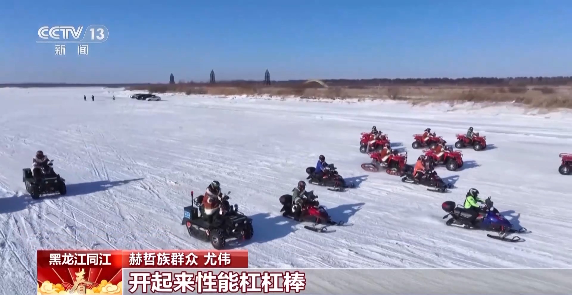 赫哲族群眾 尤偉:都以為赫哲族不以漁獵為主嘛,后期生活水平提高了,這款雪地摩托車是我們廠自己研發(fā)的,開(kāi)起來(lái)性能杠杠棒。作為我們騎手來(lái)說(shuō),心情可好可棒了。