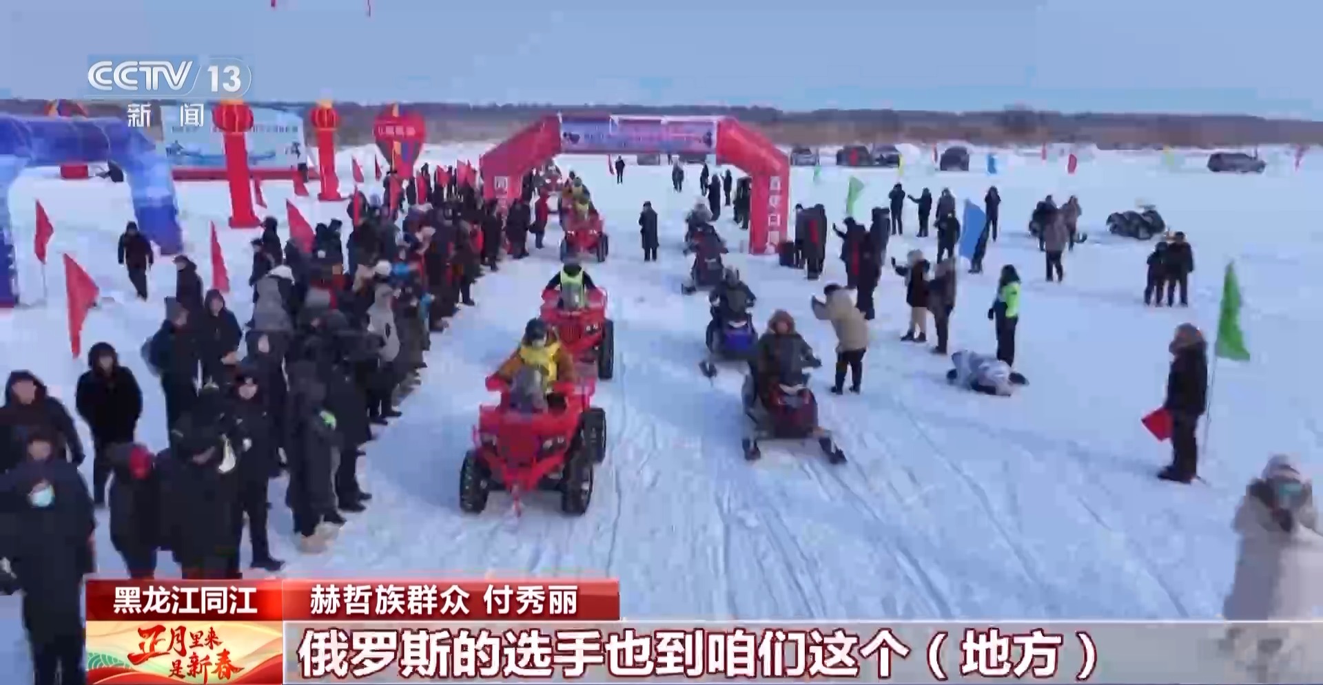 赫哲族群眾 付秀麗:不光是我們自己喜歡玩兒,俄羅斯選手也到咱們這參加比賽,騎我們生產(chǎn)的雪地摩托車,感覺(jué)特別颯。