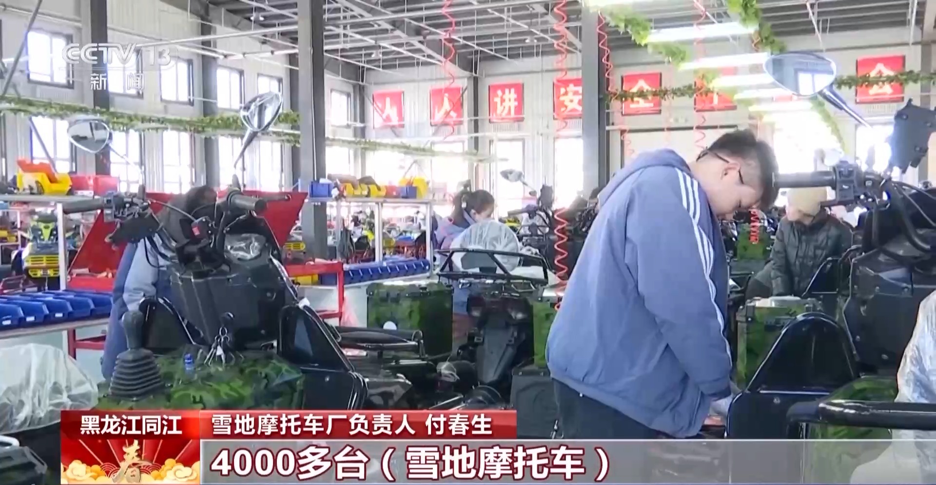 雪地摩托車廠負(fù)責(zé)人 付春生:去年我們接了很多訂單,2025年訂單我們已經(jīng)接4000多臺(tái)雪地摩托車了,其中國(guó)外的是3000多臺(tái),主要是俄羅斯,還有東歐國(guó)家。