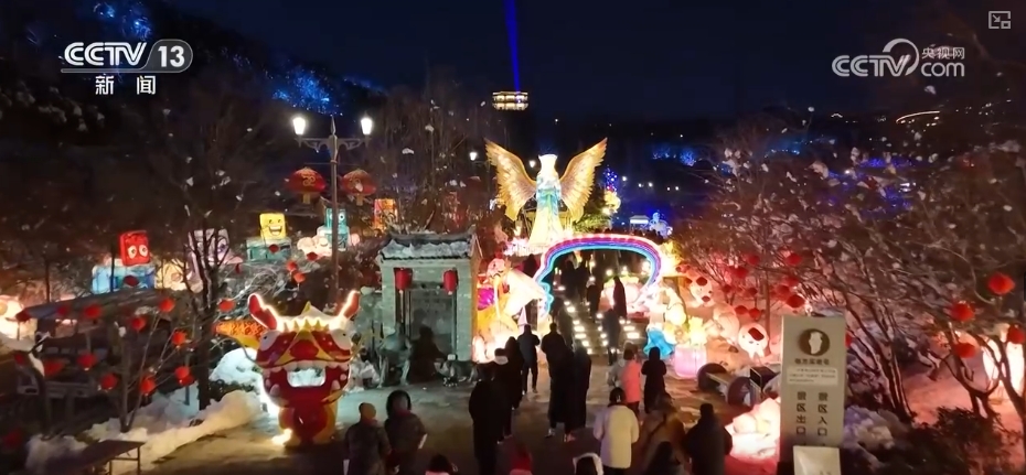 春節(jié)期間,西安白鹿原景區(qū)推出了全國(guó)首個(gè)全沉浸夢(mèng)幻山谷光影秀《夜譚·白鹿原》。從高空俯瞰,萬盞燈火將千年古原照得如詩(shī)如畫。
