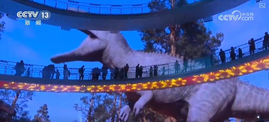春節(jié)期間循環(huán)播放的恐龍科學(xué)藝術(shù)展、春節(jié)主題展、春節(jié)檔電影精編等“四屏聯(lián)動(dòng)”原創(chuàng)視頻,將光影資源與科教文化有機(jī)融合。特別是恐龍科學(xué)藝術(shù)展深受小朋友喜愛。展覽現(xiàn)場(chǎng),巨幅卷軸屏以直觀的方式展現(xiàn)恐龍的樣貌與龐大體型,邀請(qǐng)觀眾與這些史前巨獸“比高”。環(huán)屏則將播放引人入勝的動(dòng)畫視頻,生動(dòng)再現(xiàn)侏羅紀(jì)中期恐龍的生活場(chǎng)景,讓觀眾仿佛可以跟隨恐龍的步伐,重返遠(yuǎn)古世界。
