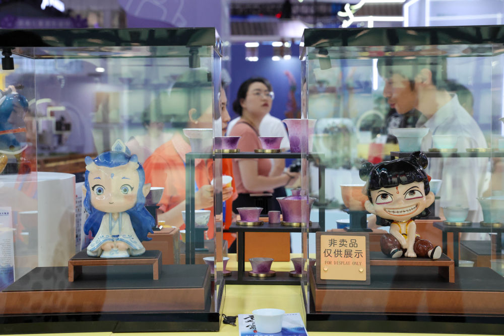 深圳,5月22日,文博會上展示的電影《哪吒》周邊產品。新華社記者 梁旭 攝