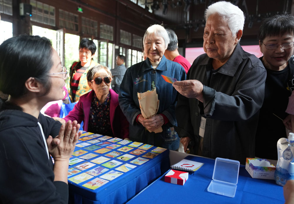 2024年10月11日,在杭州市西湖區(qū)北山街道舉行的情暖桑榆——孝親敬老服務進社區(qū)活動中,志愿者面向社區(qū)居民開展心理健康服務。新華社記者 韓傳號 攝