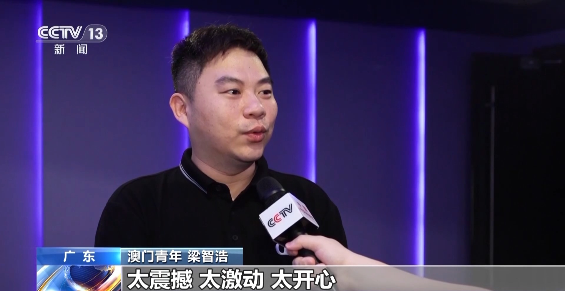 澳門(mén)青年 梁智浩:到電影院看閱兵,從來(lái)沒(méi)試過(guò)這么大的屏幕、這么多港澳青年人一起來(lái)看閱兵。我心情遲遲未能平復(fù),太震撼、太激動(dòng)、太開(kāi)心!