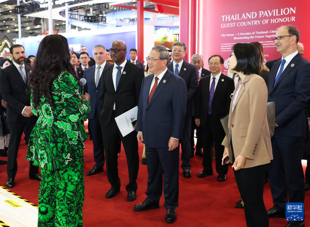 開幕式前,李強參觀了企業(yè)展。開幕式后,李強同與會外國領導人共同巡館。