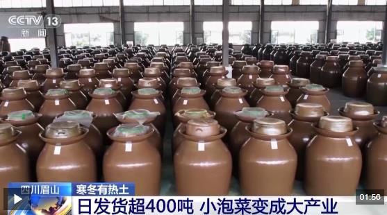 眉山“中國泡菜城”管委會經(jīng)濟發(fā)展局局長 胡春福:我們專門從原料、技術和企業(yè)三個方面出臺了相關的文件和幫扶措施,通過“企業(yè)+合作社+農(nóng)戶”模式,帶動了12萬農(nóng)戶人均年增收1.3萬元。目前全市泡菜全產(chǎn)業(yè)鏈產(chǎn)值已經(jīng)達到220億元。