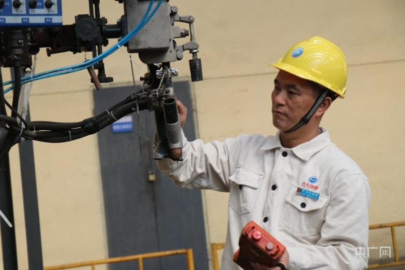 甘榮剛正在檢查焊接設(shè)備(央廣網(wǎng)記者 劉培俊 攝)