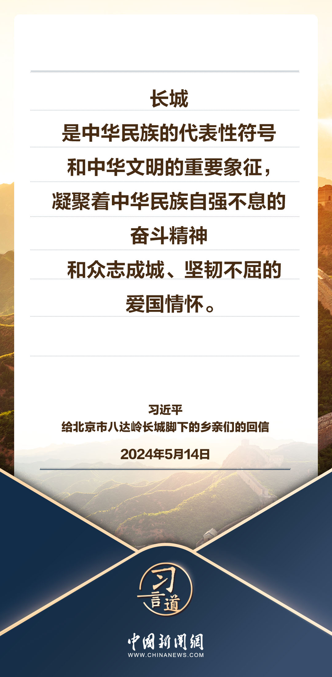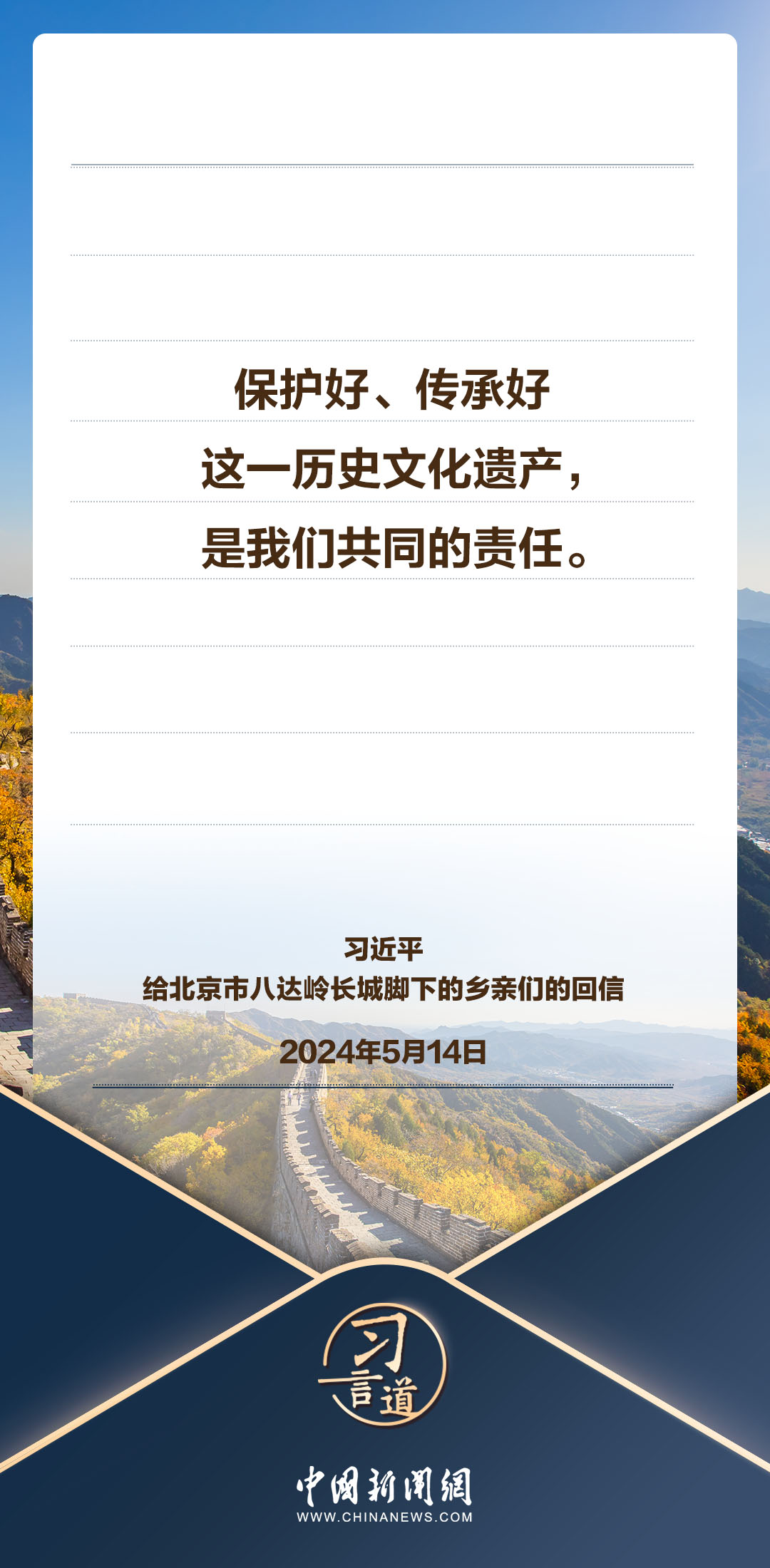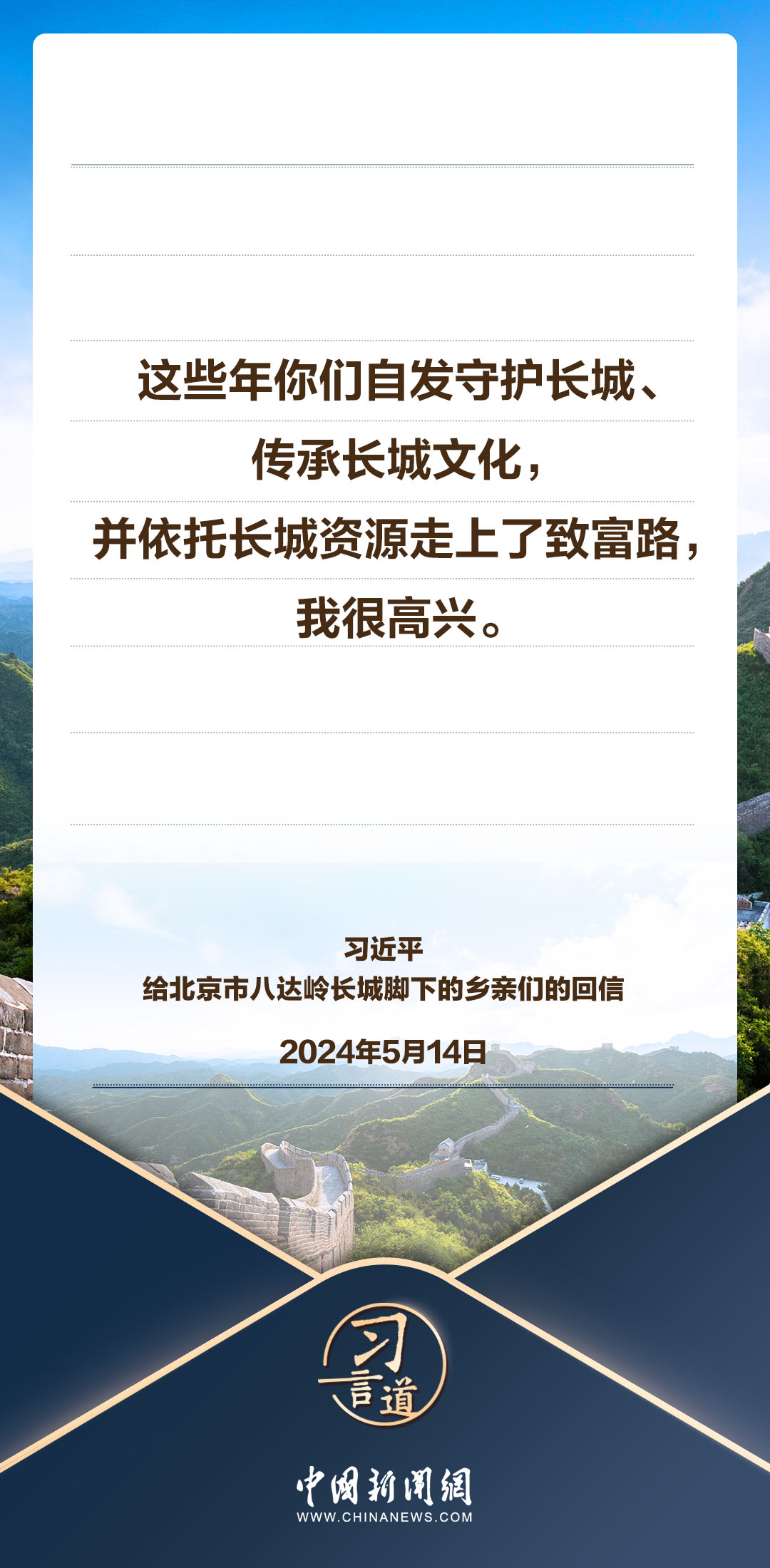 中共中央總書記、國家主席、中央軍委主席習(xí)近平5月14日給北京市延慶區(qū)八達嶺鎮(zhèn)石峽村的鄉(xiāng)親們回信,向他們致以誠摯問候并提出殷切期望。習(xí)近平指出——
