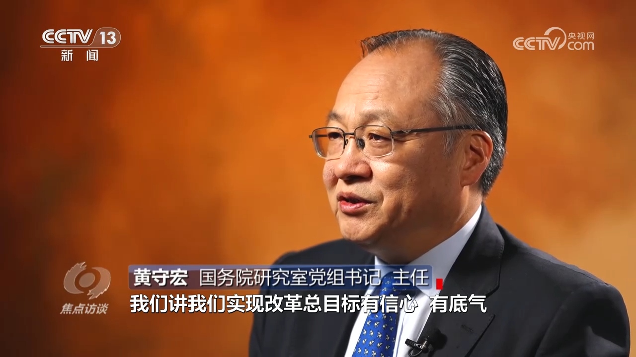 黃守宏:“在進(jìn)一步全面深化改革總目標(biāo)中,明確了到2035年的階段性改革目標(biāo),‘七個(gè)聚焦’的分領(lǐng)域改革目標(biāo),明確了到2029年完成《決定》提出的改革任務(wù)的要求,形成了在總目標(biāo)的統(tǒng)領(lǐng)之下,有總有分、總分結(jié)合、體系完備的目標(biāo)體系和推進(jìn)改革的時(shí)間表、路線圖、任務(wù)書?!?/p>