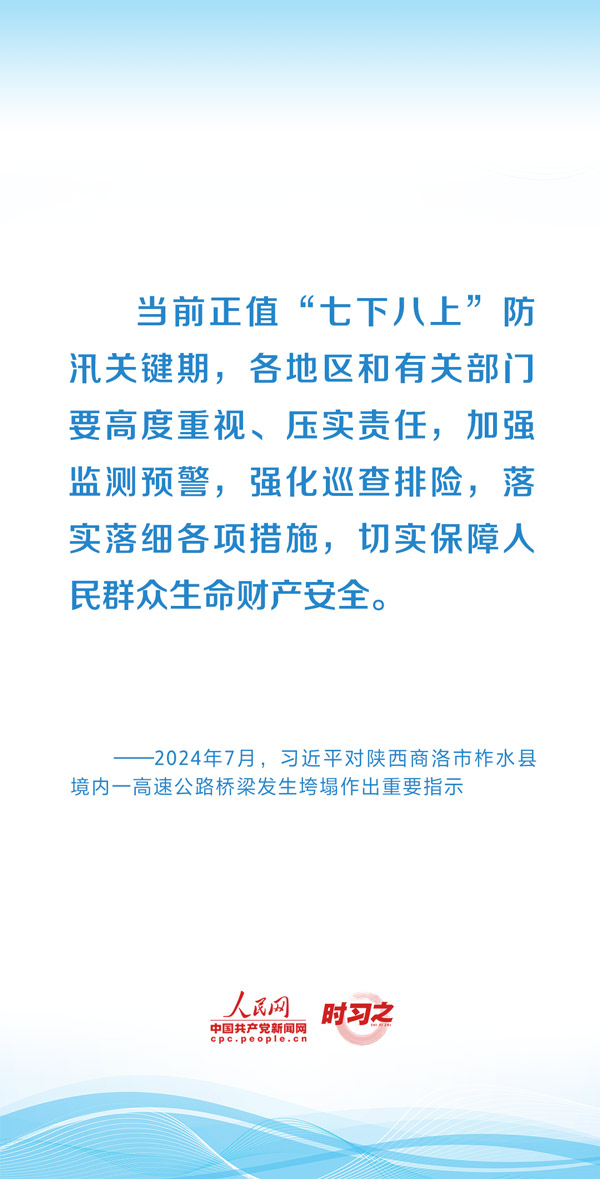 中共中央政治局常務(wù)委員會(huì)7月25日召開會(huì)議,研究部署防汛抗洪救災(zāi)工作。中共中央總書記習(xí)近平主持會(huì)議并發(fā)表重要講話。一直以來,習(xí)近平總書記高度重視防汛抗洪救災(zāi)各項(xiàng)工作,多次作出重要指示批示,強(qiáng)調(diào)切實(shí)保障人民群眾生命財(cái)產(chǎn)安全。