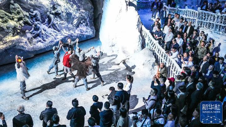 2023年10月22日,觀眾在“紅飄帶”數(shù)字體驗(yàn)館內(nèi)觀看體驗(yàn)長(zhǎng)征故事(來(lái)源:新華社)