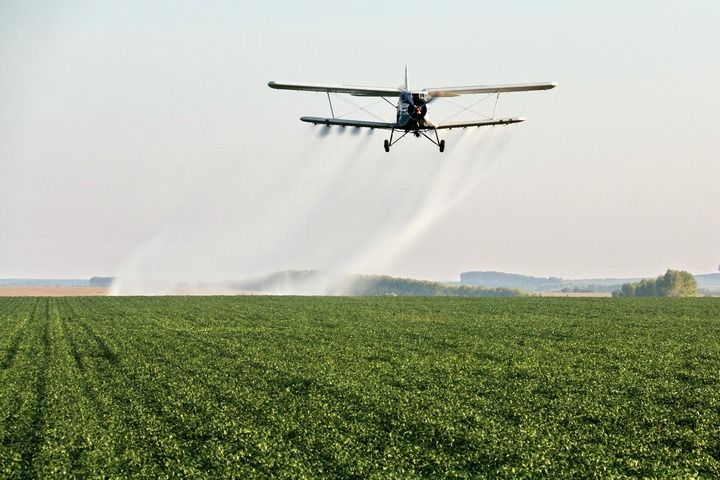 在北大荒集團黑龍江五大連池農(nóng)場有限公司大豆地塊,農(nóng)用飛機在進行“一噴多促”作業(yè)(2024年8月20日攝)。新華社發(fā)(陸文祥攝)