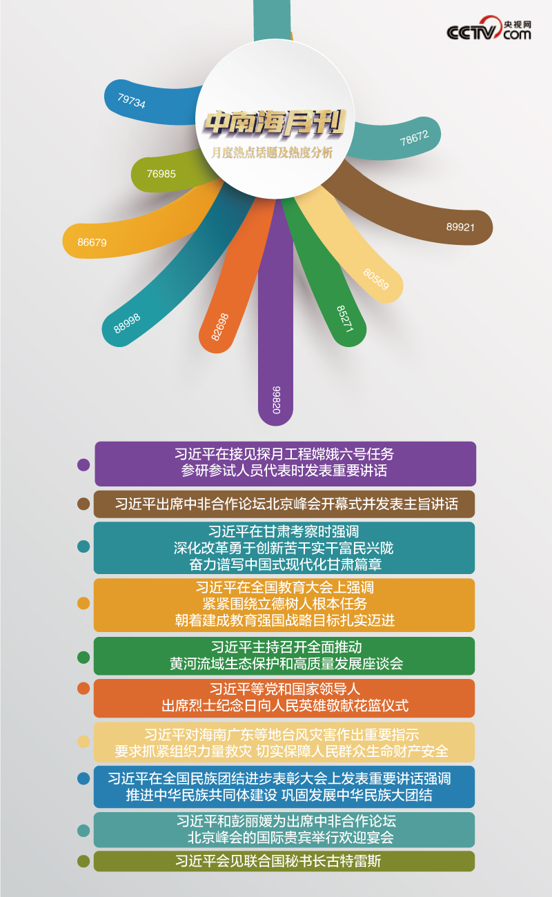 9月,中非深化團(tuán)結(jié)合作、攜手推進(jìn)現(xiàn)代化“雙向奔赴”,標(biāo)注下共筑人類命運(yùn)共同體的“全球南方時刻”。在央視網(wǎng)“智聞”系統(tǒng)提取分析的9月全網(wǎng)時政新聞熱點(diǎn)中,處處體現(xiàn)著匯聚夢想、激蕩信心的生動局面。