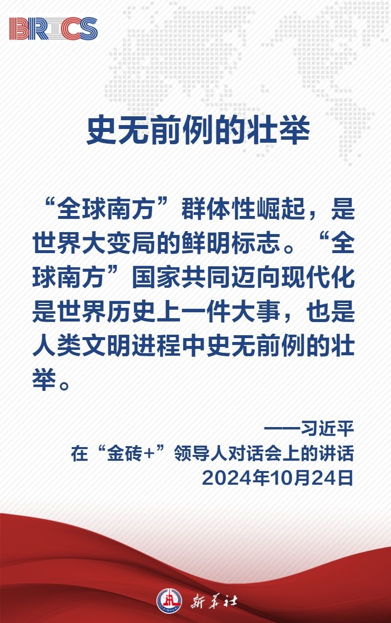 當(dāng)?shù)貢r(shí)間10月24日上午,國(guó)家主席習(xí)近平在喀山會(huì)展中心出席“金磚+”領(lǐng)導(dǎo)人對(duì)話(huà)會(huì)并發(fā)表題為《匯聚“全球南方”磅礴力量 共同推動(dòng)構(gòu)建人類(lèi)命運(yùn)共同體》的重要講話(huà),闡明中國(guó)主張——