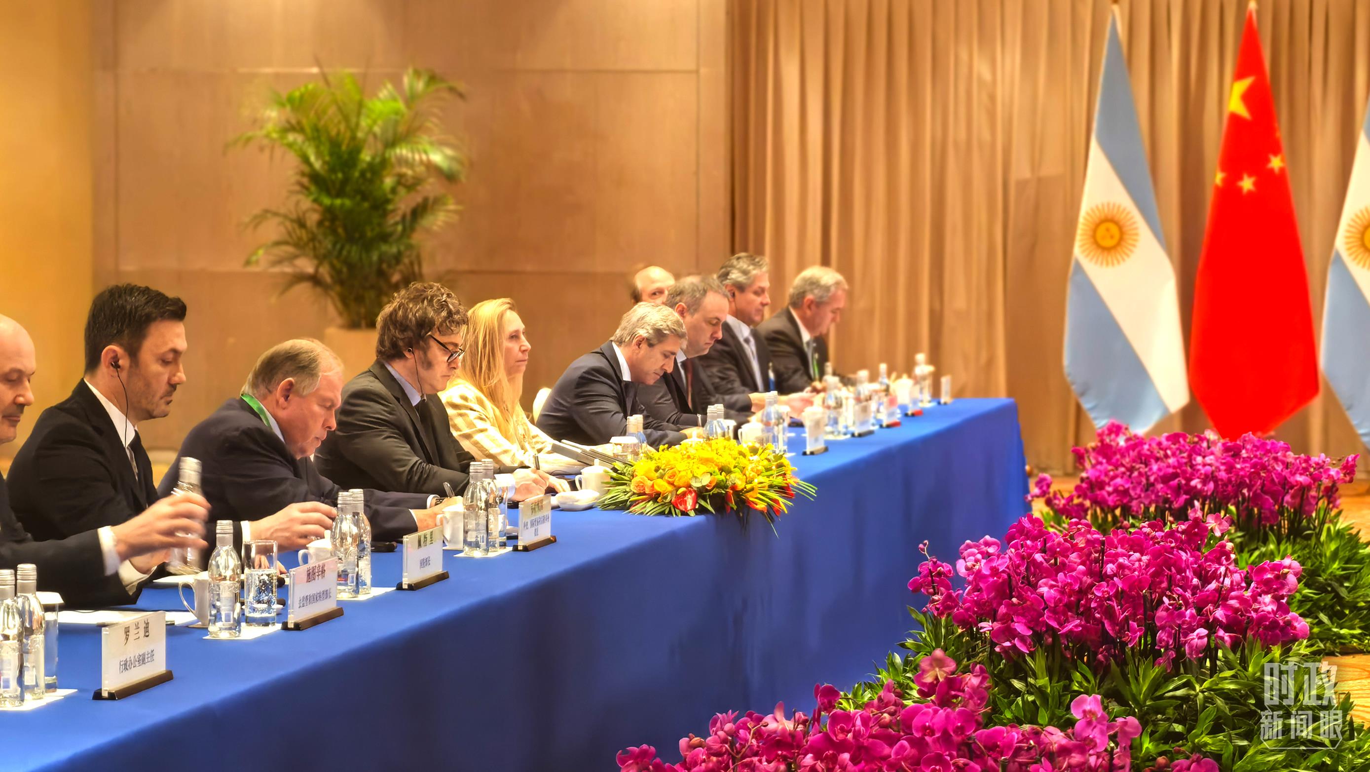 習(xí)主席會見阿根廷總統(tǒng)米萊現(xiàn)場。(總臺央廣記者潘毅拍攝)