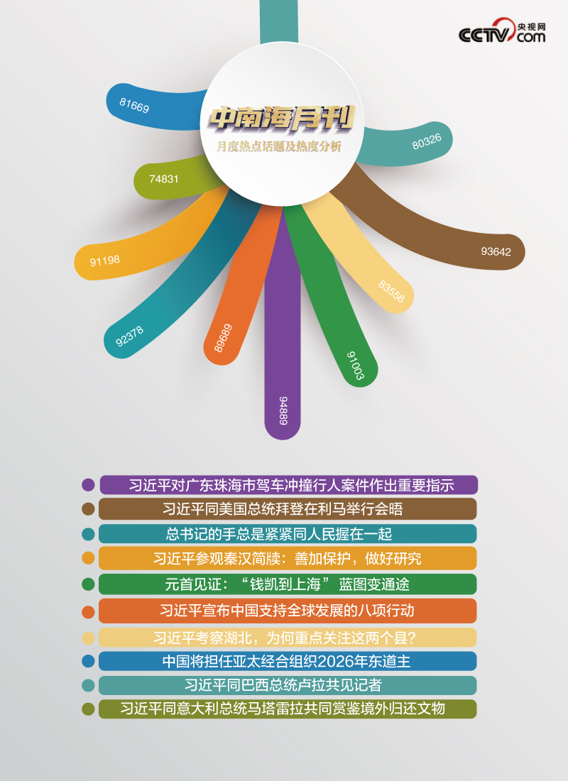 在日復一日的勤勉工作中,習近平總書記始終心懷“國之大者”,踐行為國為民的承諾。央視網(wǎng)《中南海月刊》運用智能大數(shù)據(jù),解碼總書記務實又忙碌的11月。