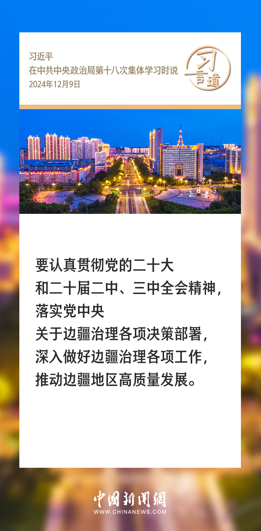 中共中央政治局12月9日就我國歷史上的邊疆治理進行第十八次集體學習。中共中央總書記習近平在主持學習時強調(diào)——