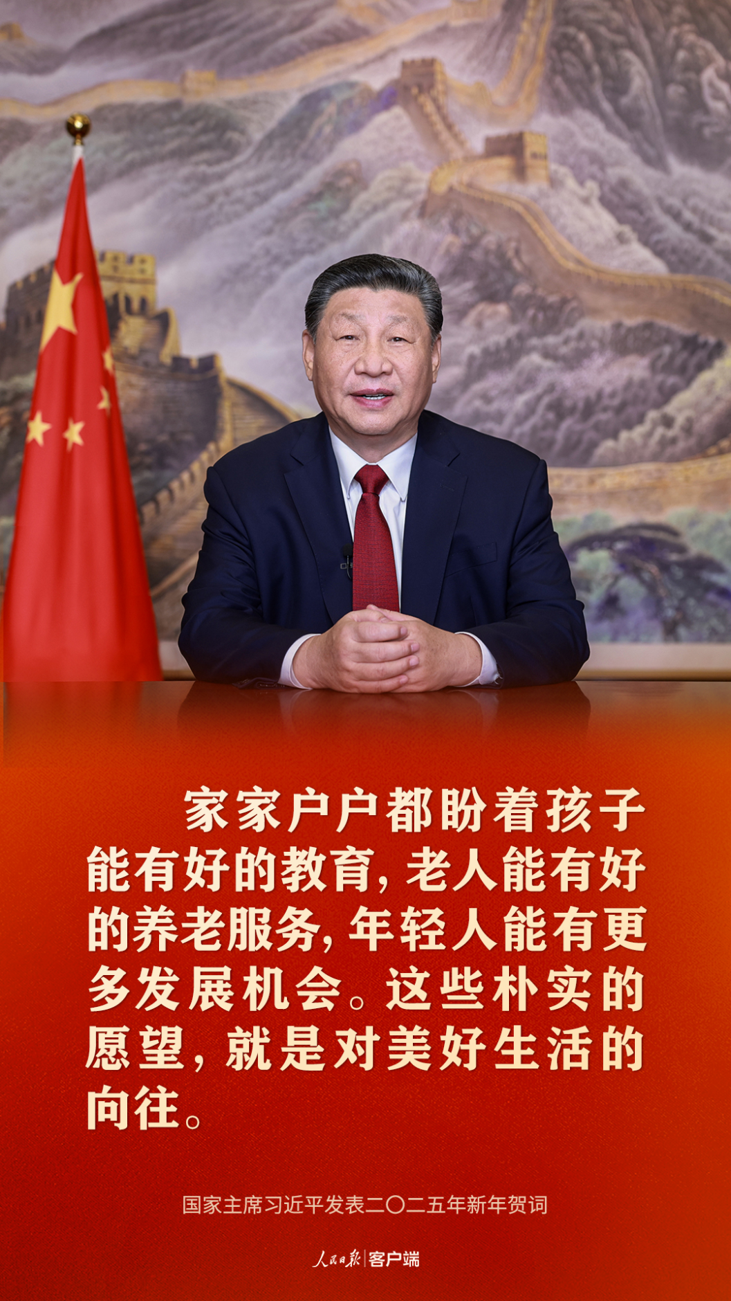 寄望新一年,習(xí)主席勉勵(lì):“我們要一起努力,不斷提升社會(huì)建設(shè)和治理水平,持續(xù)營造和諧包容的氛圍,把老百姓身邊的大事小情解決好,讓大家笑容更多、心里更暖?!?/p>