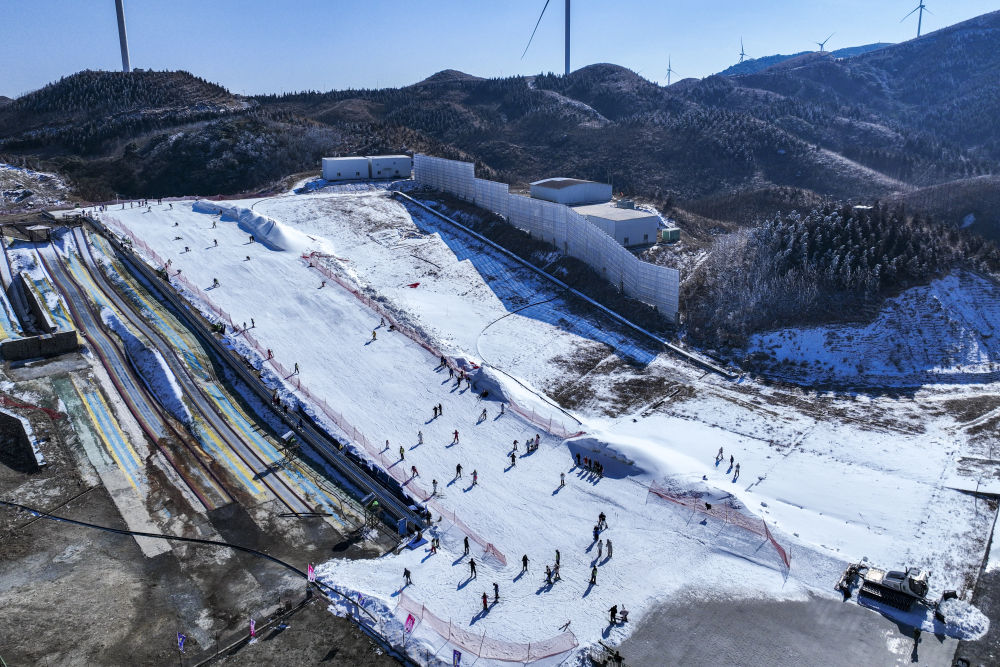 2025年1月11日,人們在成都市大邑縣西嶺雪山雪場滑雪(無人機照片)?,F(xiàn)今四川擁有近50個冰雪旅游區(qū),重點滑雪場16家。省內(nèi)一些地區(qū)還設(shè)有室內(nèi)冰雪場、旱雪場,讓滑雪愛好者全年都能享受“雪上”樂趣。