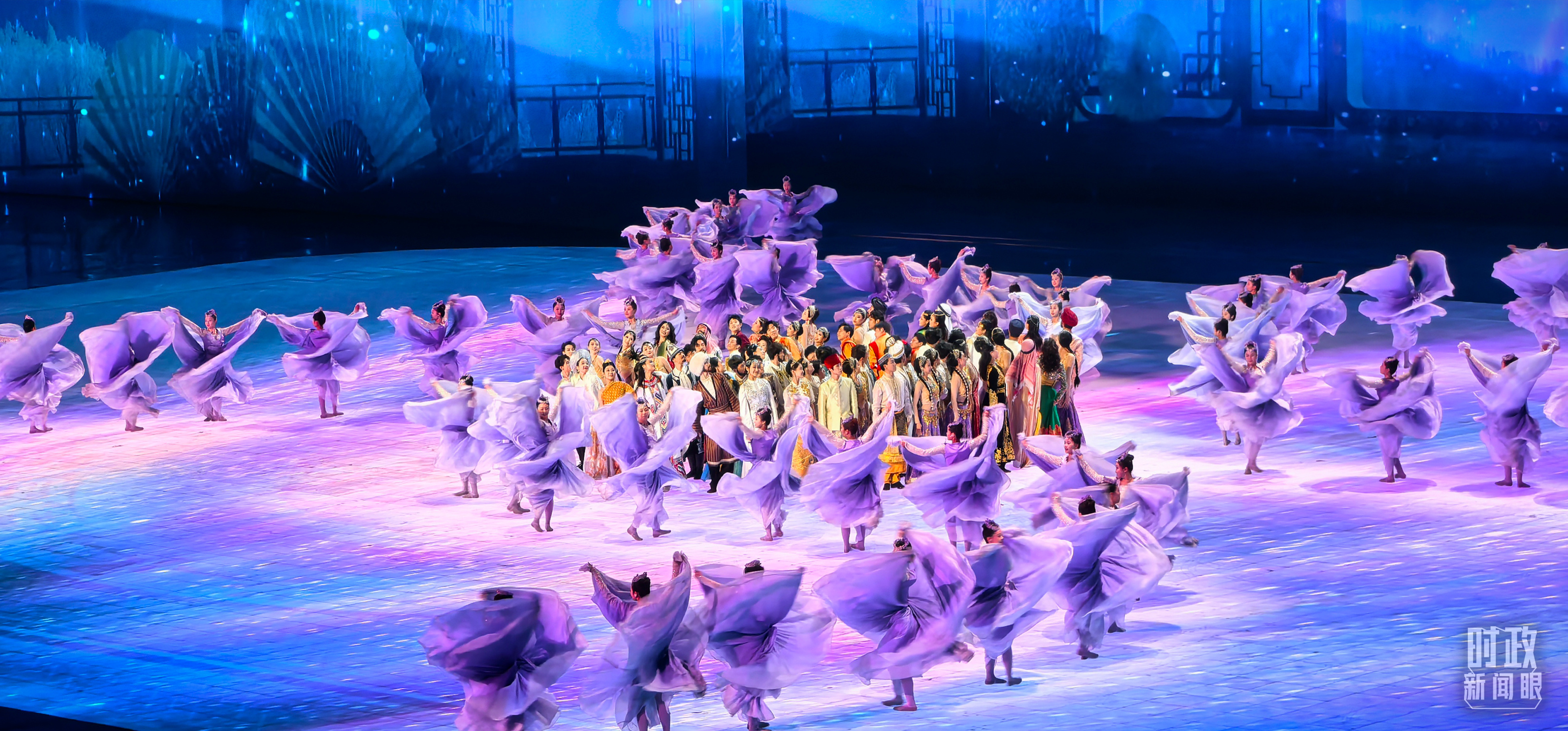 文藝表演分為上篇《熾熱冰雪》、中篇《燃情時(shí)速》、下篇《山高水長(zhǎng)》,通過(guò)《長(zhǎng)歌頌冰河》《榮光耀未來(lái)》《馳騁天地間》《璀璨嘉年華》《攜手情久長(zhǎng)》《萬(wàn)里共和鳴》等節(jié)目,展現(xiàn)化“極寒”為“極美”“極燃”“極暖”的意蘊(yùn)。
