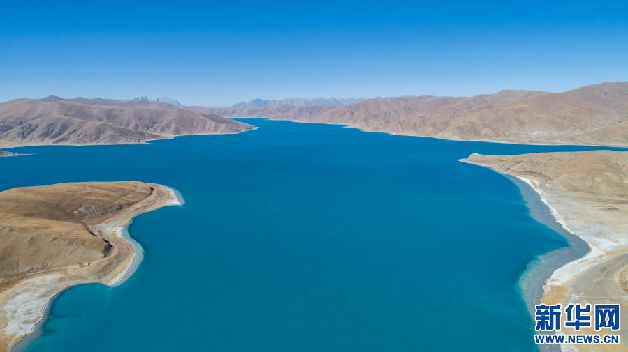 這是1月10日拍攝的羊卓雍錯景色(無人機(jī)照片)。新華社記者 孫非 攝