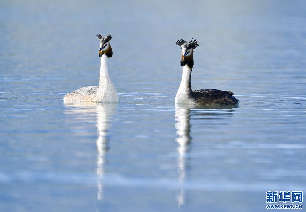 夏日里,鳳頭 和小 在西藏拉薩拉魯濕地國家級自然保護區(qū)水面上嬉戲。