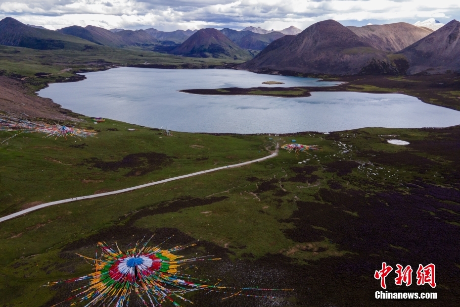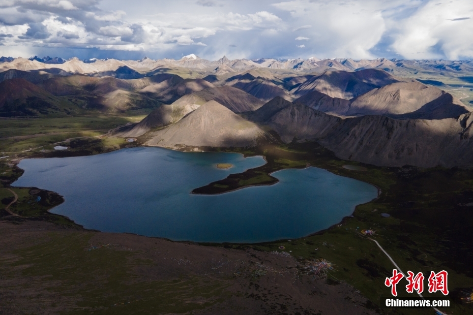 6月23日,思金拉措湖風(fēng)光秀麗。思金拉措位于西藏墨竹工卡縣日多鄉(xiāng),海拔4500多米,周邊群峰簇?fù)恚匦为q如聚寶盤,不少民眾將其稱為西藏的“財(cái)神湖”。(無人機(jī)照片) 中新社記者 江飛波 攝