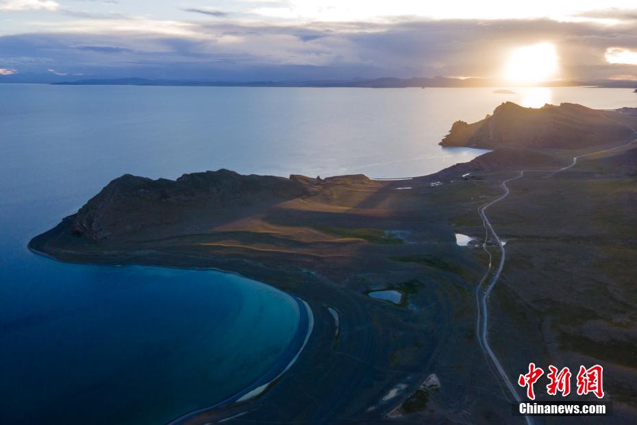 夕陽的余暉照耀在納木錯(cuò)湖岸半島上。 江飛波 攝