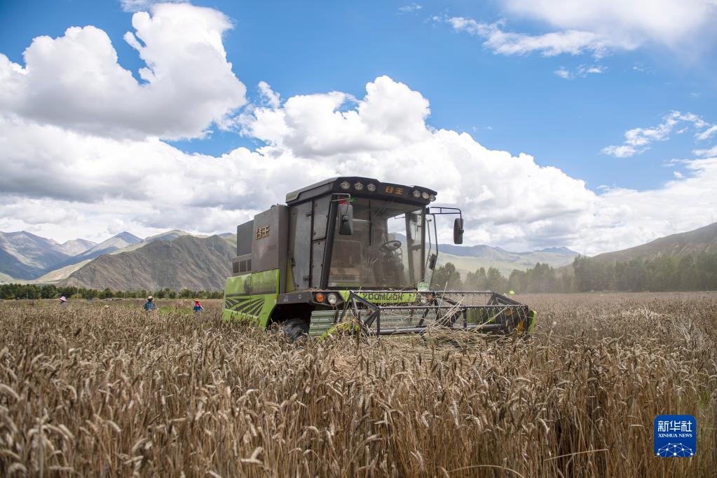 拉薩市達(dá)孜區(qū)克日村的農(nóng)民用農(nóng)業(yè)機(jī)械收割青稞(9月6日攝)。新華社記者 孫瑞博 攝