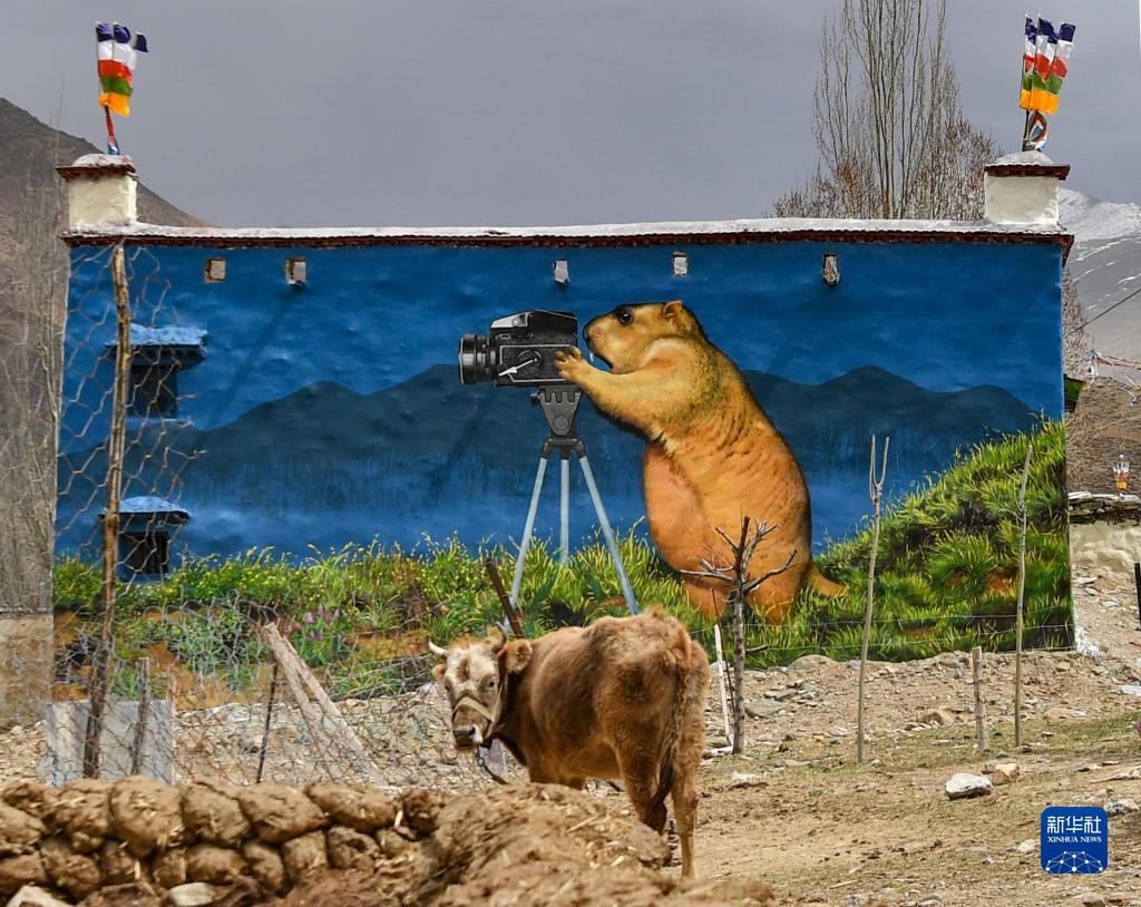 這是4月10日在拉薩市達(dá)孜區(qū)章多鄉(xiāng)恰村拍攝的墻畫(huà)。新華社記者 晉美多吉 攝