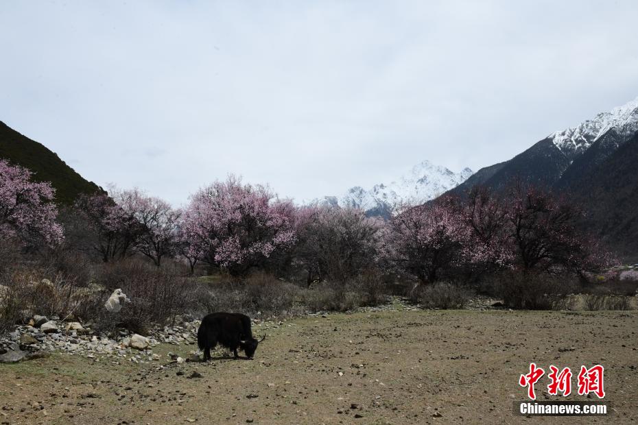 4月14日,西藏小“江南”林芝市工布江達縣桃花正盛放。這里海拔3400多米,森林覆蓋,雪山映照,桃花花期比西藏其他地方的更晚一些。當(dāng)?shù)剞r(nóng)牧民靠著“桃花旅游”增收。這里緊鄰國家森林公園、國家5A級旅游景區(qū)巴松措,是很多游客必打卡之地。林芝桃花節(jié)最負(fù)盛名,已舉辦20屆,各地桃花花期相繼從3月底一直至4月中旬,吸引著來自五湖四海的游客。圖為桃花盛放,遠(yuǎn)處雪山映照。貢嘎來松 攝