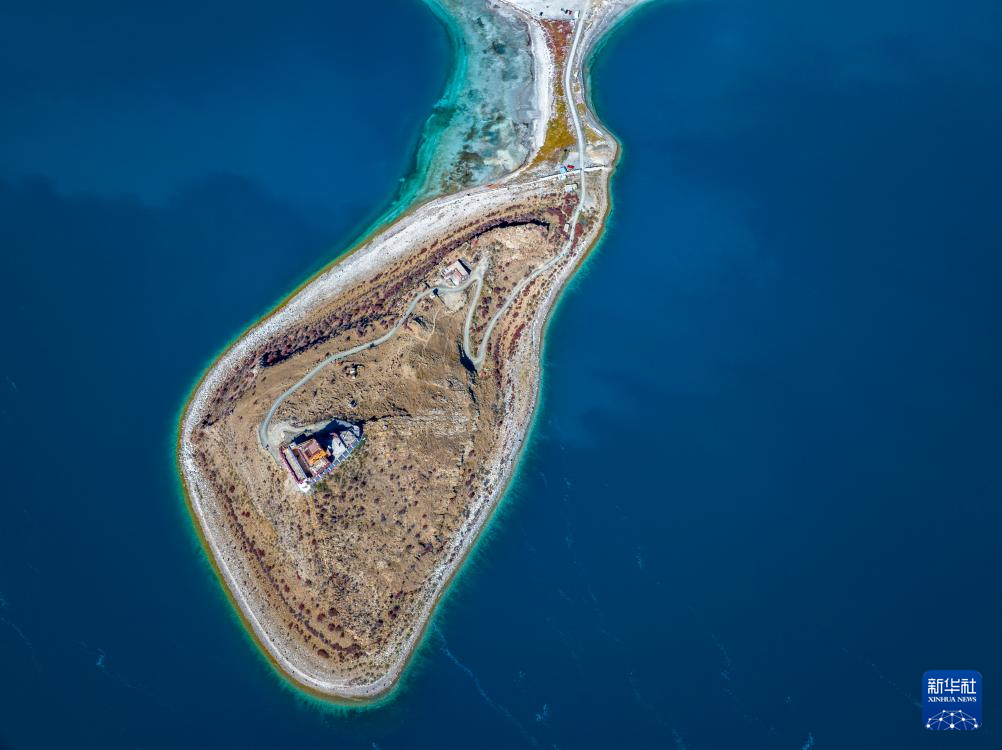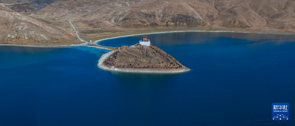 這是10月25日拍攝的羊卓雍錯和日托寺(無人機照片)。新華社記者 姜帆 攝