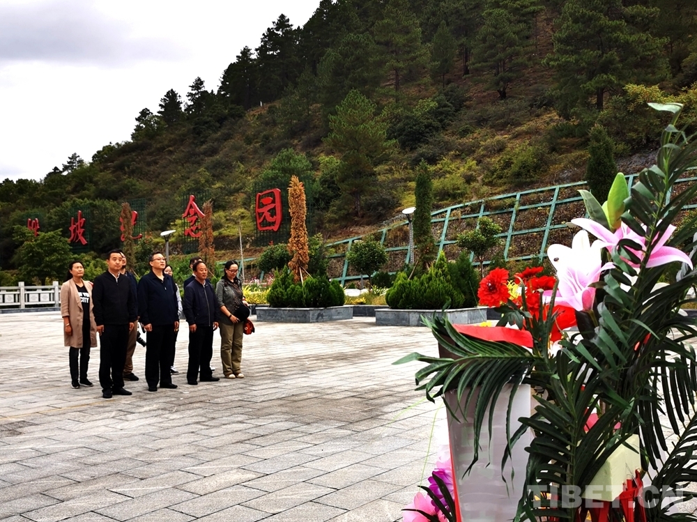 英雄坡上,紀念碑上鐫刻的“革命烈士永垂不朽”幾個大字,令人肅然起敬,大家垂首肅立默哀。公保代表中國西藏信息中心仔細整理花籃緞帶,并敬獻花籃。隨后,一行人緩步繞行紀念碑、陵墓,祭奠忠魂。