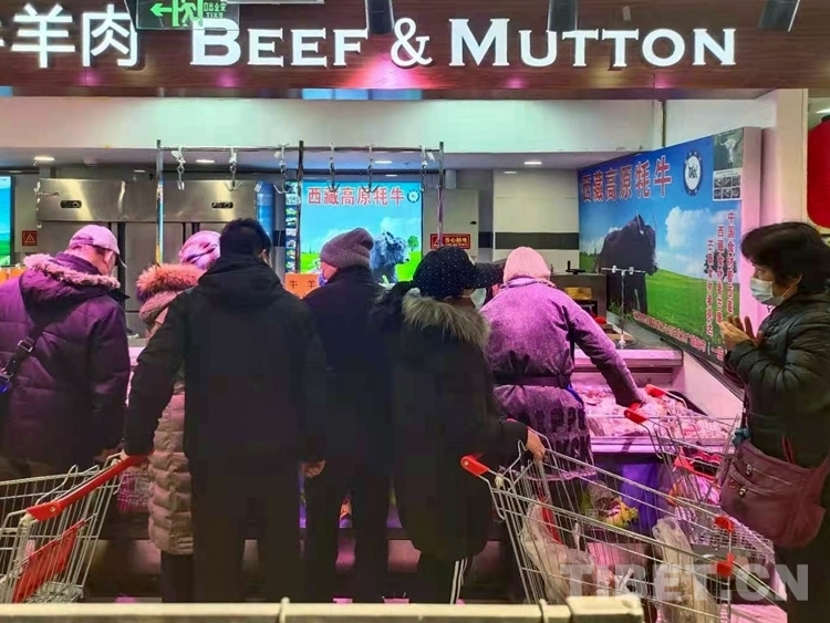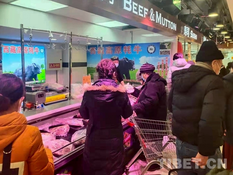中國西藏網(wǎng)訊 近日,北京廣聯(lián)連鎖超市冷鮮肉柜臺前,購買牛肉的市民正在認(rèn)真選購來自西藏昌都市芒康縣的高原牦牛肉。