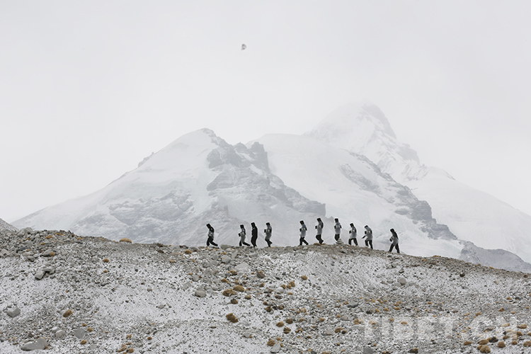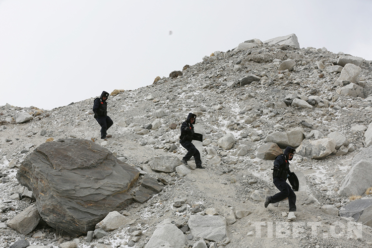 圖為民警們在珠穆朗瑪峰核心區(qū)域開展巡邏 攝影:彭維熙