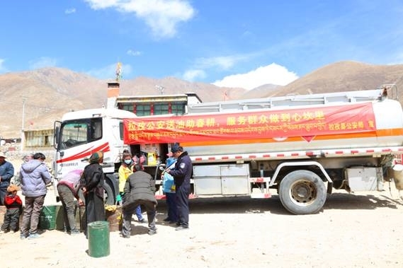因拉孜縣彭措林鄉(xiāng)、扎西崗鄉(xiāng)地處偏遠,村民購買柴油困難,拉孜縣公安局及時與相關(guān)部門和中國石油拉孜分公司溝通協(xié)調(diào),適時掌握群眾用油需求,成立了拉孜公安送油小分隊,指派專職民警跟著油車送油助春耕,將便民、惠農(nóng)服務延伸到田間地頭,讓群眾不出村就可以加到放心的柴油。