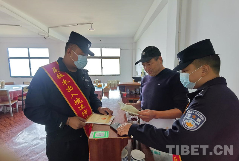 圖為西藏聶拉木出入境邊防檢查站民警為轄區(qū)餐館老板宣講法律知識(shí)