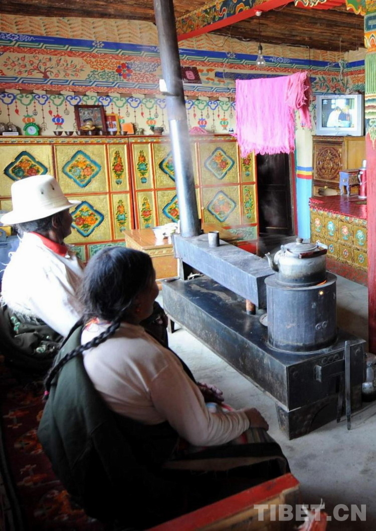 我們來到二村,時任村黨支部書記的桑旦早早地就迎候在村口,給人一種熱情而沉著的印象。他把我們領(lǐng)進村文化室,屋里牛糞燒得正旺,暖烘烘的。桌子上擺有二村的特色風(fēng)干牦牛肉,桑旦將熱氣騰騰的酥油茶端來。我們一邊細細品嘗牦牛肉的獨特風(fēng)味,一邊與桑旦攀談起來。桑旦話語雖不多,但每說一句,總能道出二村昔日的貧窮與今日走上安康生活的感慨。