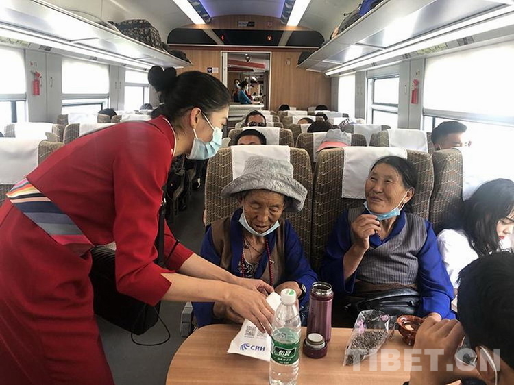 圖為拉林鐵路上乘務員正在為旅客服務 攝影:李海星 斯朗卓瑪