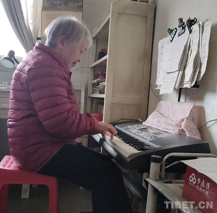 鄧親和,四川省樂山市犍為縣人,出生于1931年,十八軍52師文工隊(duì)?wèi)?zhàn)士。1950年,鄧親和19歲,正值高三,成績(jī)優(yōu)異的她不顧家人的勸阻,毅然放棄了繼續(xù)讀書的機(jī)會(huì),踏上了解放西藏的征途,從此在雪域高原上留下了人生最寶貴的青春足跡。初見鄧?yán)蠋?,她親切和藹的樣子,給我留下深刻的印象。老人雖然退休多年,但是她的生活仍然格外豐富。據(jù)老人講,她的作息時(shí)間比較規(guī)律,堅(jiān)持做八段錦鍛煉身體,自己做家務(wù),空閑時(shí)間還會(huì)看書看報(bào)、提筆練字,或是彈彈電子琴,唱唱歌等等,生活豐富多彩。此刻,我從她的身上看到了年輕時(shí)鄧親和的神態(tài)與風(fēng)采?;厥啄嵌螎槑V歲月,翻雪山、過(guò)草地、穿峽谷、涉冰河……面臨高山缺氧的生命危險(xiǎn),趟越急流冰河的刺骨鉆心,爬冰臥雪、忍饑耐寒,遇艱險(xiǎn)不畏其險(xiǎn),歷困難不以為難,樁樁件件好似一首首雋永的絢麗詩(shī)篇,常在她記憶里回蕩,令人難忘。
